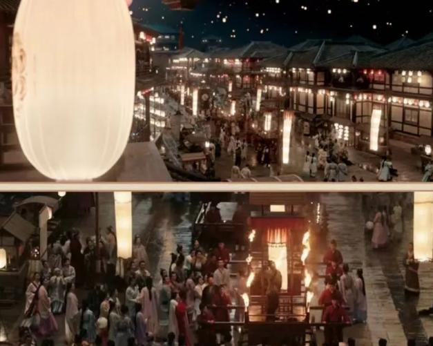 上元节灯会、曲陵小院、皇宫大院等的置景,从色彩到构图都极具美感。