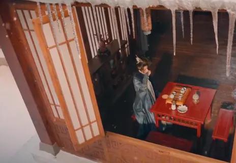 像国漫中出场的落雪山庄里身披价值连城千金裘的庄主萧瑟,店内的装饰从门框到角度几乎一比一复原。